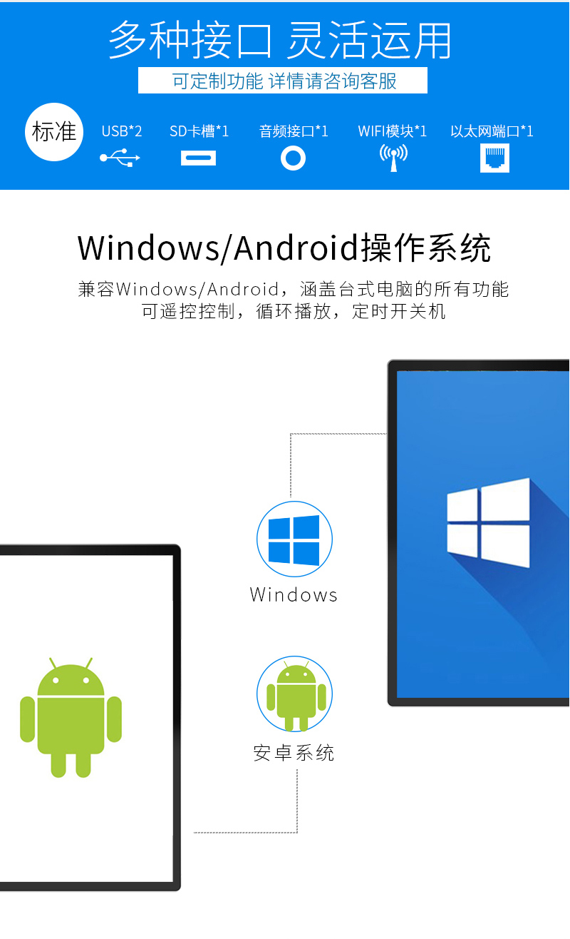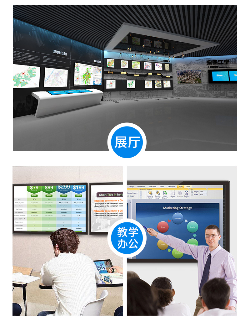 主營業務:滑軌屏、全息展示柜、觸摸一體機、廣告機等;