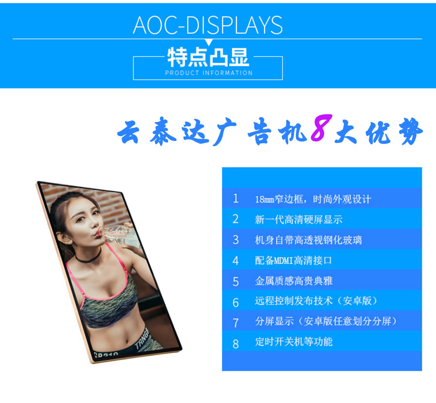 主營業務:滑軌屏、全息展示柜、觸摸一體機、廣告機等;