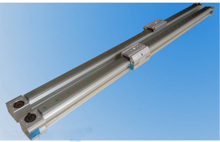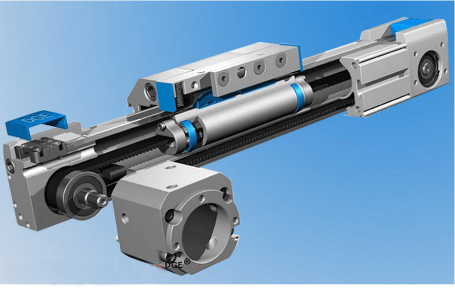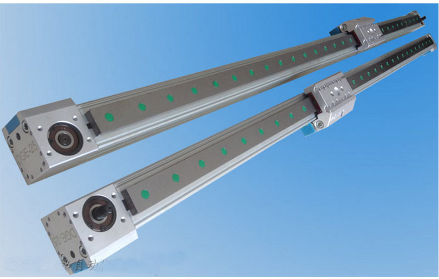 DGE25同步帶直線滑臺,缸筒型材45*45mm,有效行程100mm-4000mm, 負載能力1kg-0kg,傳動精度±0.1mm(行程1米以內的精度),最高傳動速度3m/s(加減速時間200毫秒=0.2秒),同步輪21齒, 同步帶寬15mm,同步帶導程3M,同步輪轉一圈63mm,同步輪出軸Φ8mm,總長度=(有效行程+372mm),重量KG=2.25+0.48×行程 (如1000=0.48×10)+0.71+0.53,相關配件:上銀直線導軌,美國蓋茨同步帶,NSK防水防塵軸承,垂直使用不建議客戶選用同步帶,會 降低同步帶的使用壽命,可單軸使用也可多軸組合使用,可根據客戶行程要求設計定制.