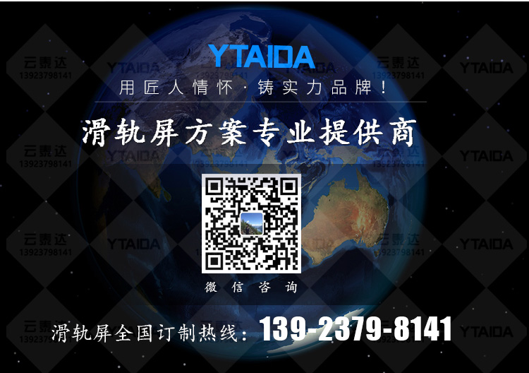 滑軌屏自帶精準控制方式,結合背景墻內容互動,滑軌自動移動到對應點位展示其數字內容,滑動到不同的位置展示不同內容,展示內容可以是圖片、文字、視頻。滑軌屏標配觸摸功能可一鍵設置為手動推屏模式,軟件展示內容也可更具需要隨意更改,并且能做到自動巡航和返航等功能。