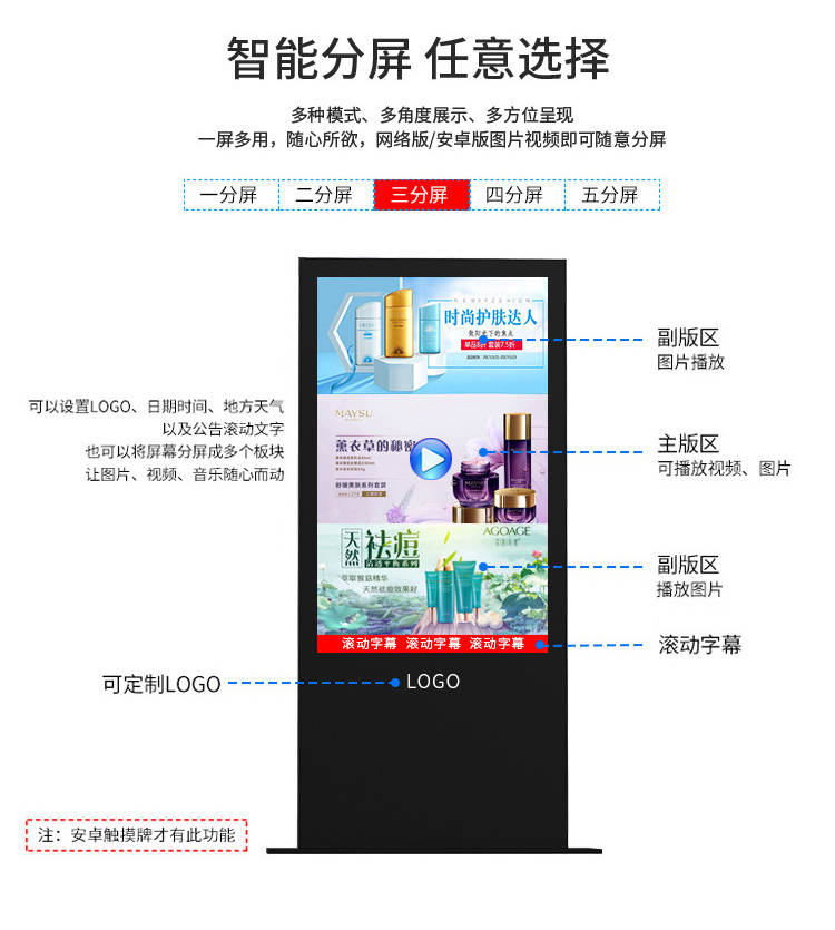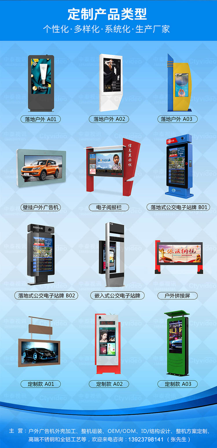 主營業務:滑軌屏、全息展示柜、觸摸一體機、廣告機等;