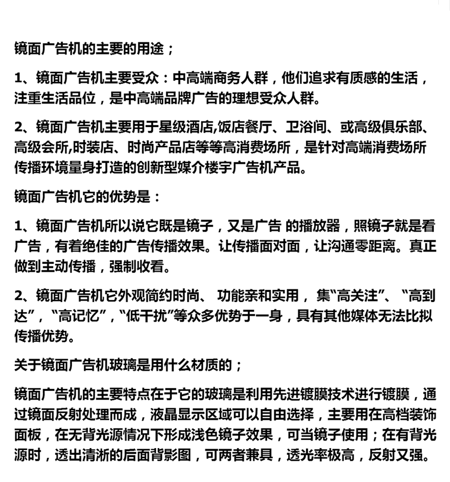 主營業務:滑軌屏、全息展示柜、觸摸一體機、廣告機等;