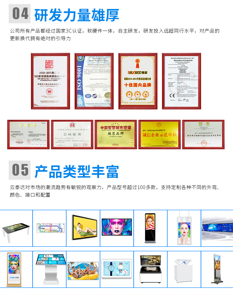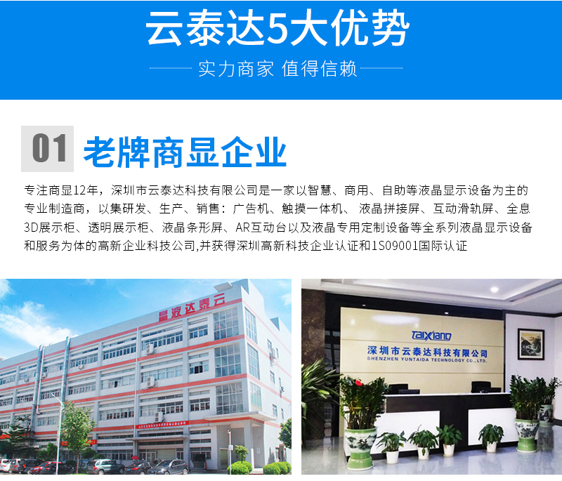 主營業務:滑軌屏、全息展示柜、觸摸一體機、廣告機等;