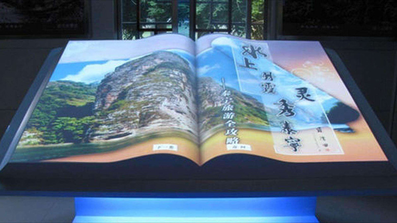 虛擬翻書系統又叫做電子翻書、空中翻書、感應翻書、互動翻書等,虛擬翻書是利用動作感應技術以及計算機多媒體技術實現的一種虛擬翻書的視覺效果。里面可以記載豐富的資料(包括動畫、視頻、圖片)。參觀者只需揮動手臂,就可以快速翻頁閱讀,這種虛擬翻書形式新穎,視覺沖擊力強,在展廳可以給人以神奇感,而且可以展示的信息量大。