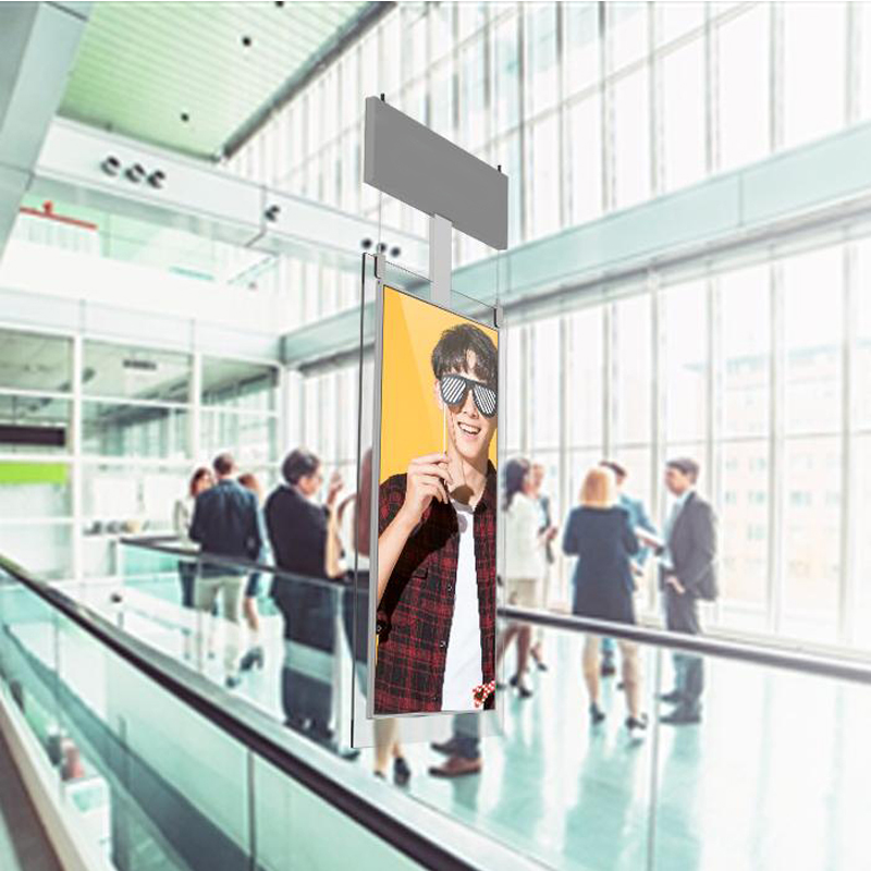 吊掛安裝的顯示屏,安裝在櫥窗上,一機雙面,可面向不同的受眾。相當于買了兩臺廣告機,無論從哪個角度來看,都是雙面屏廣告機。