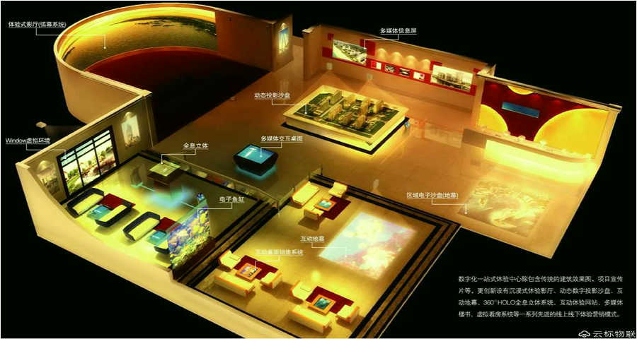 數(shù)字化一站式體驗中心除包含傳統(tǒng)的建筑效果圖,項目宣傳片等,更創(chuàng)新設(shè)有沉浸式體驗影廳,動態(tài)數(shù)字沙盤、互動地幕、360度全息立體系統(tǒng)、互動體驗網(wǎng)站,多媒體樓書,vr虛擬看房系統(tǒng)等一系列先進的線上線下體驗營銷模塊。