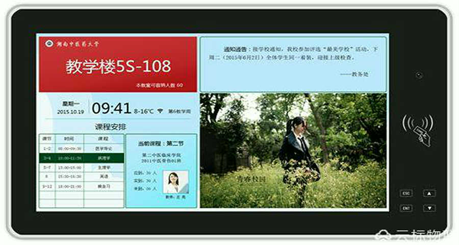 教學樓的大堂或者電梯口、樓梯口安裝一個或者多個信息發(fā)布點,有利于學院發(fā)布通知、公告、課程安排時間表、權威教授的講座、好人事跡、新聞等等有利于學生學習和了解的信息內容;有利于學生更好的了解學校政策和社會發(fā)展情況;從而豐富了學校的教學手段,還提高了教學質量,優(yōu)化了教學環(huán)境。