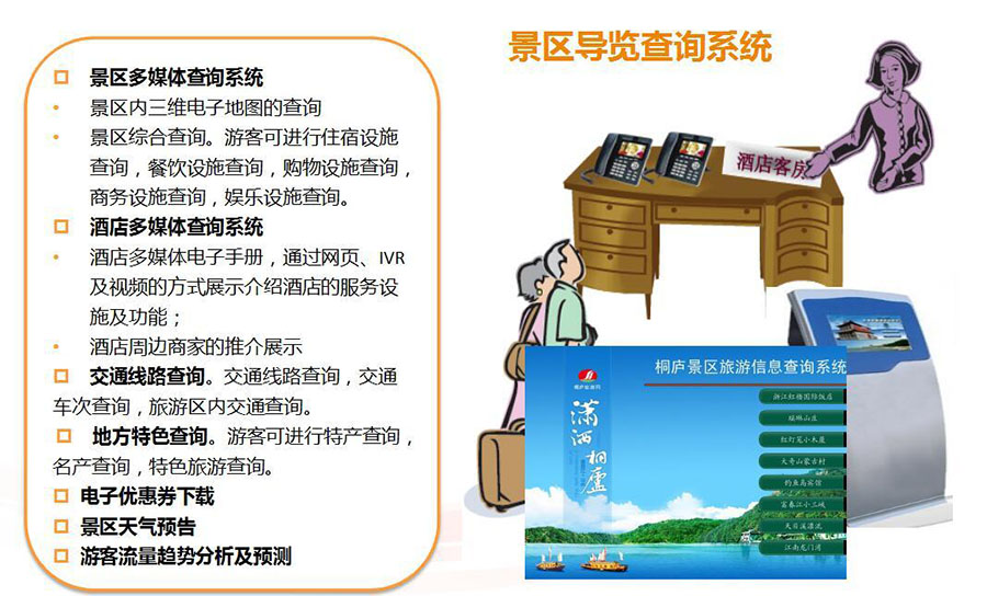 導(dǎo)覽查詢系統(tǒng)實(shí)現(xiàn)景點(diǎn)介紹、景點(diǎn)查詢、線路規(guī)劃、應(yīng)急處理、自助服務(wù)等應(yīng)用。