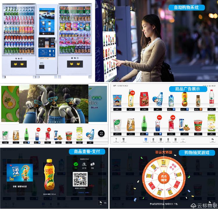 自助觸摸查詢,微信支付寶支付,趣味購物獎勵小游戲。